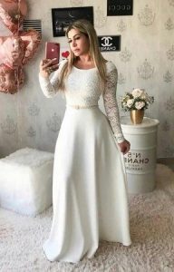 Bônus: uma noivinha charmosa usando um vestido com renda na parte de cima e malha piquet na parte de baixo. 🥰